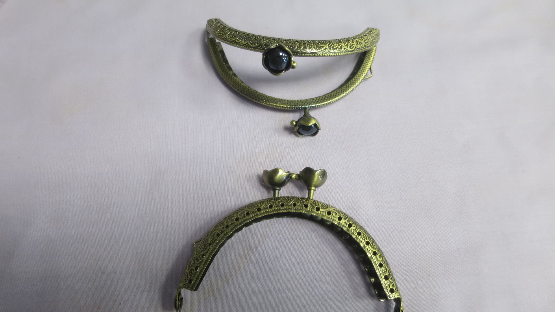 Kotirauad vedrulukuga , 1aas, pronks tumesiniste pärlitega , 8,5X4,5cm